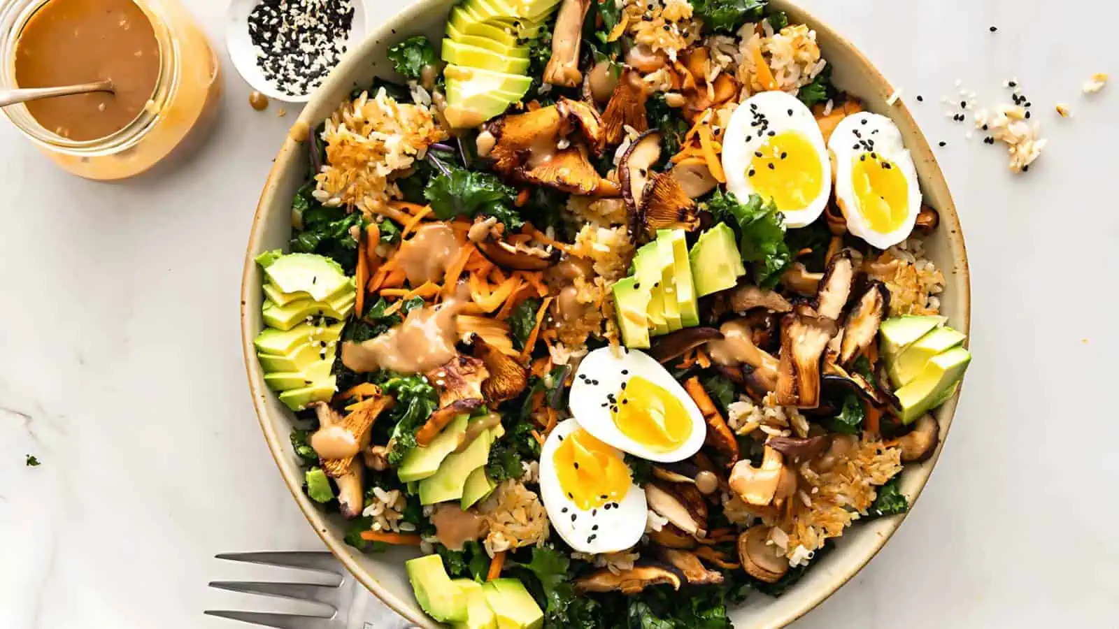 Kale Breakfast Salad with caramelized mushrooms is a nutritious and delicious start to your day. The fresh mushrooms add a hearty texture, complementing the crispy rice and avocado. This is a standout example of recipes using fresh mushrooms to enhance a hearty breakfast.