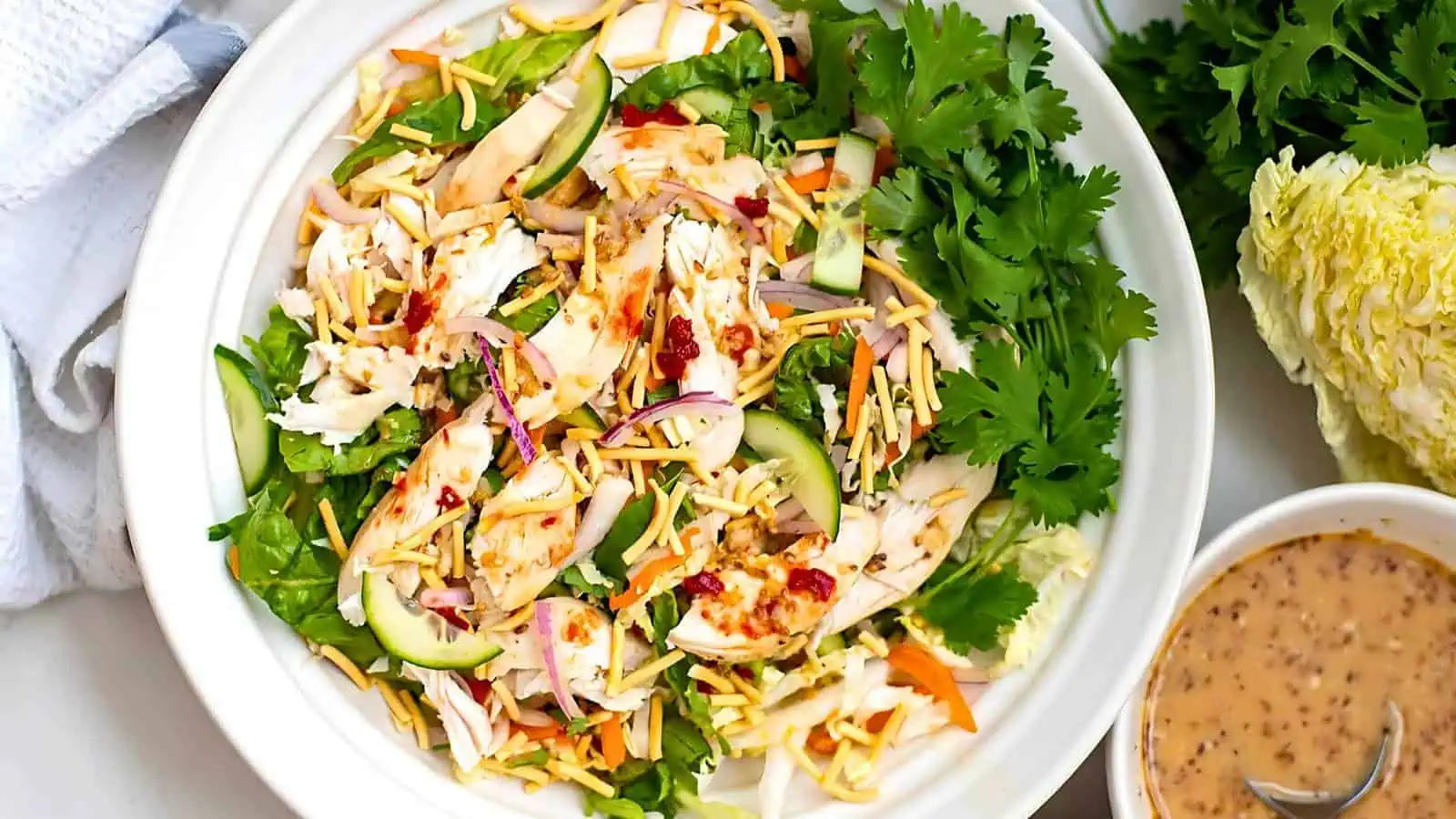 Asian Chicken Salad With Ginger Garlic Dressing is an excellent choice for recipes using rotisserie chicken. This refreshing salad is quick to prepare and full of flavor, thanks to the zesty dressing. Itโs a great option for a light and easy meal.