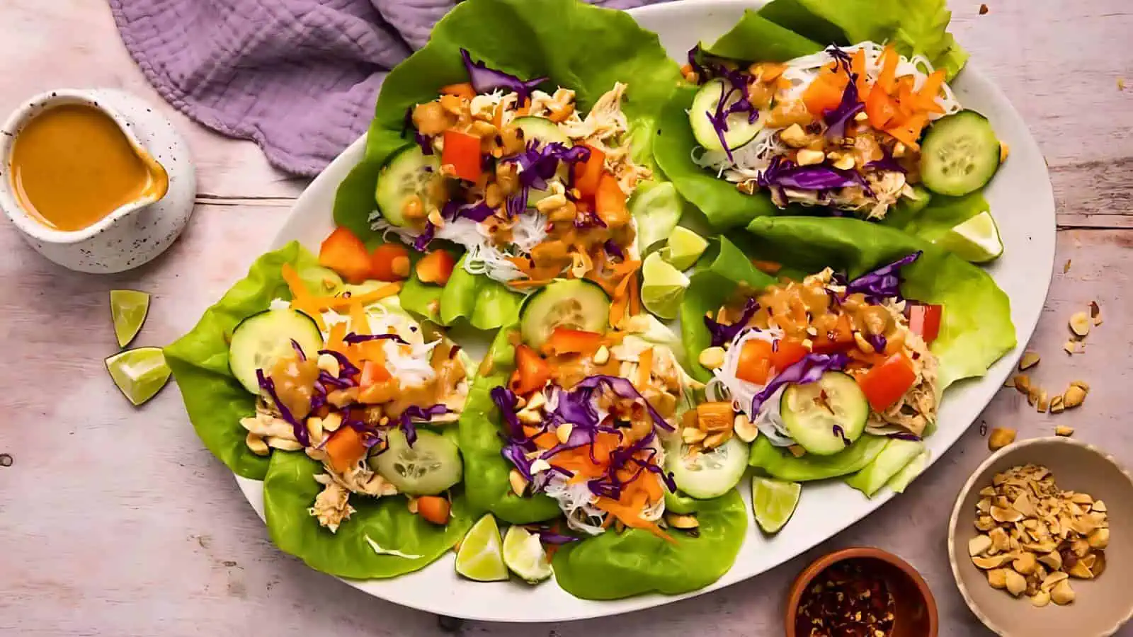 Rotisserie Chicken Lettuce Wraps With Peanut Sauce