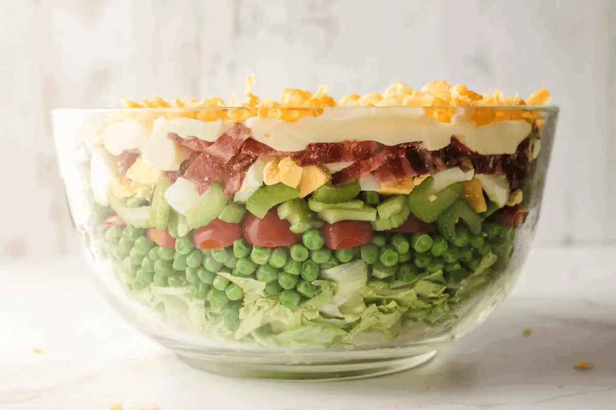 This 7 Layer Salad is perfect for any picnic or potluck! It's a make-ahead winner with seven layers of crunchy lettuce, veggies, cheese, and bacon, all topped with a classic creamy dressing. It stays fresh for days and is a must-have for summer BBQs.