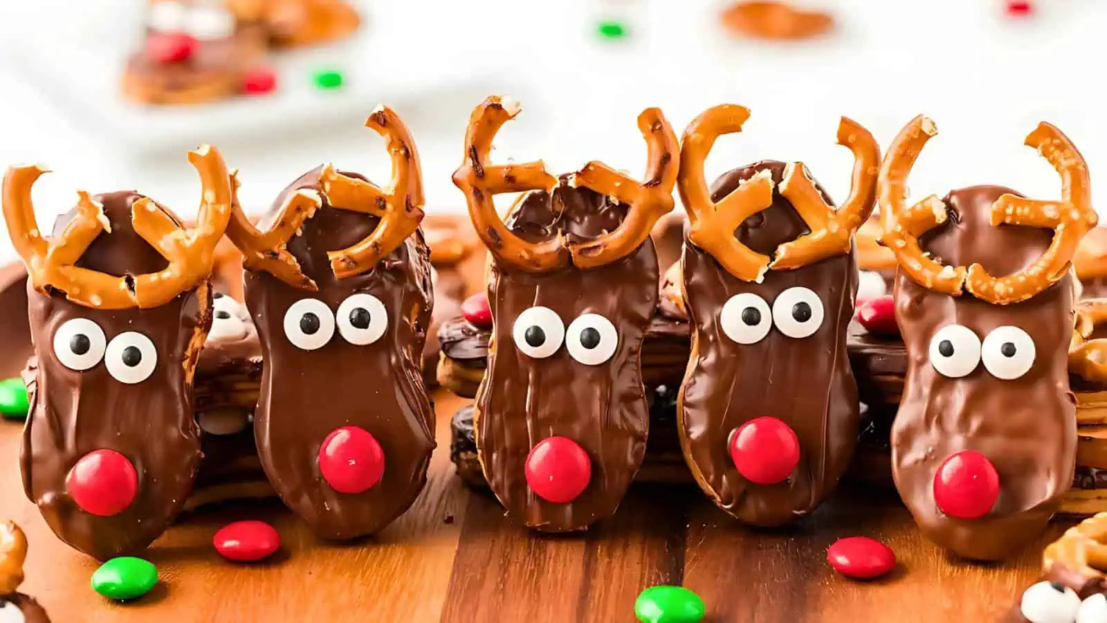 Chocolate frosted donuts get a holiday makeover as Rudolph the Reindeer. With simple ingredients and easy assembly, these reindeer recipes are a sweet way to celebrate the season. Perfect for Christmas morning or a festive snack break.