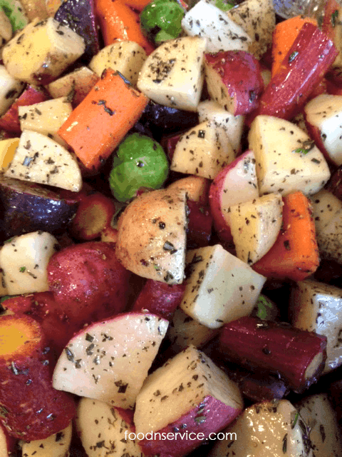 Oven Roasted Potatoes, Brussels Sprouts, and Rainbow Carrots