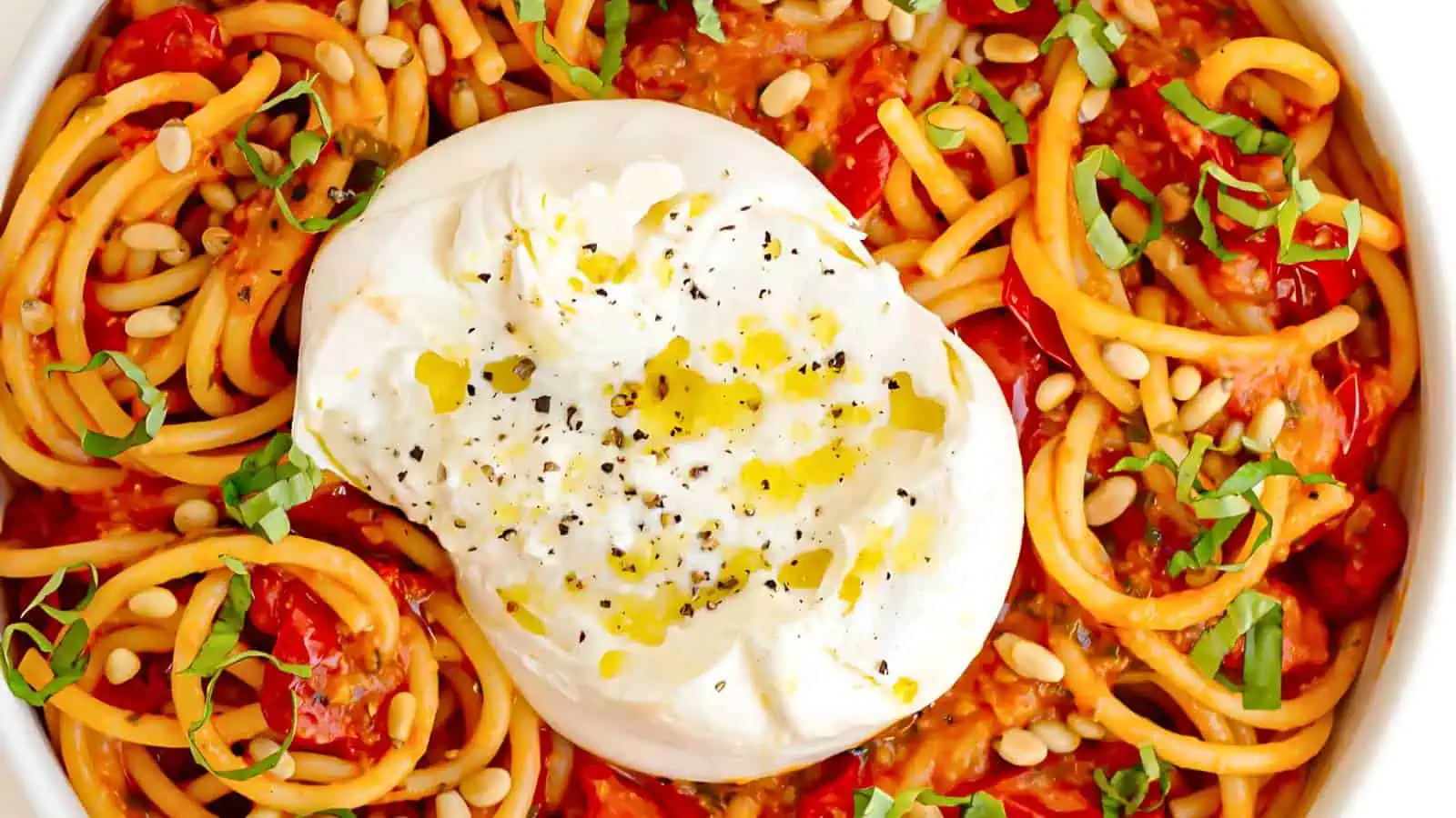 This burrata pasta is a deliciously simple option for a romantic Valentineโ€™s dinner. The cherry tomato garlic butter sauce adds a burst of flavor, while the creamy burrata cheese creates a dreamy, melt-in-your-mouth texture. Itโ€™s a dish that feels luxurious yet easy to make, perfect for a cozy date night. Pair it with a side of garlic bread for a complete meal.