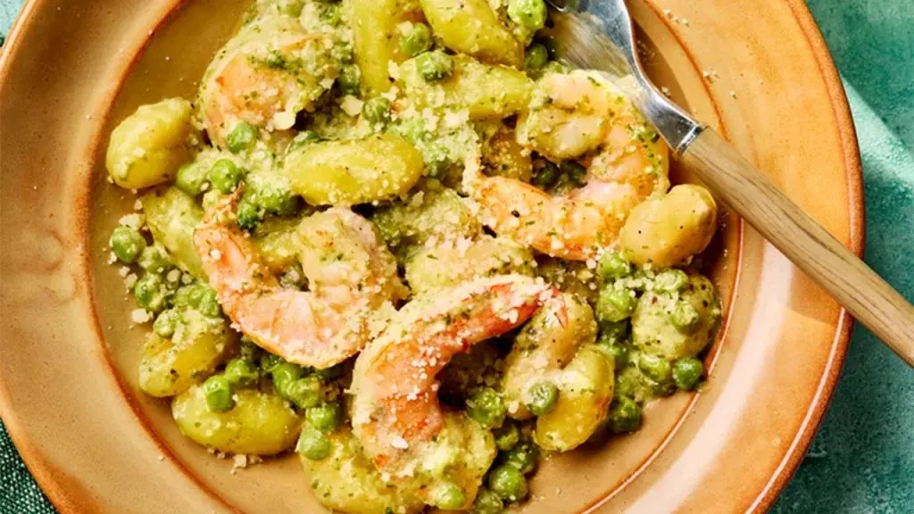 Get Recipes : Pesto Shrimp & Gnocchi: Creamy Indulgence