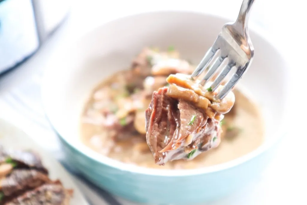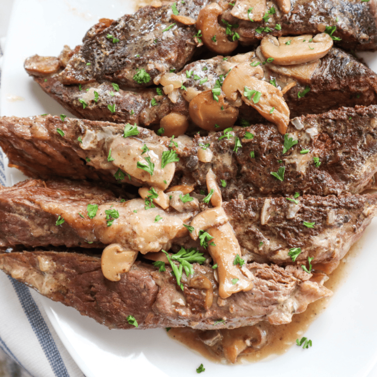 This recipe involves sauteeing mushrooms in a pan before transferring them to a slow cooker with the rest of the ingredients. Set it for 8 hours, and you’ll have the perfect roast complete with a creamy sauce and tender mushrooms.