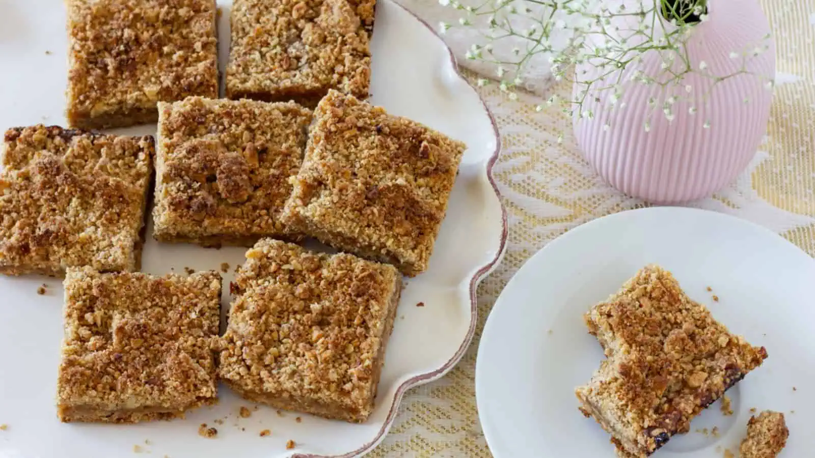 Easy Peach Crumb Bars (with walnuts!)