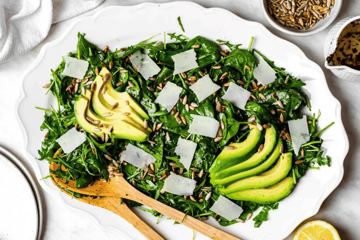 Looking for a fresh, zesty side dish to elevate your meal? Look no further than our Arugula Spinach Salad with sumac dressing! This delightful mix of creamy avocado, toasted sunflower seeds, and shaved parmesan cheese will have your taste buds singing with every bite.