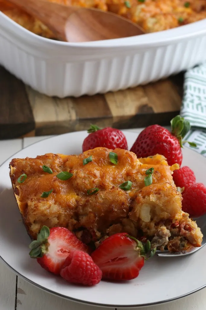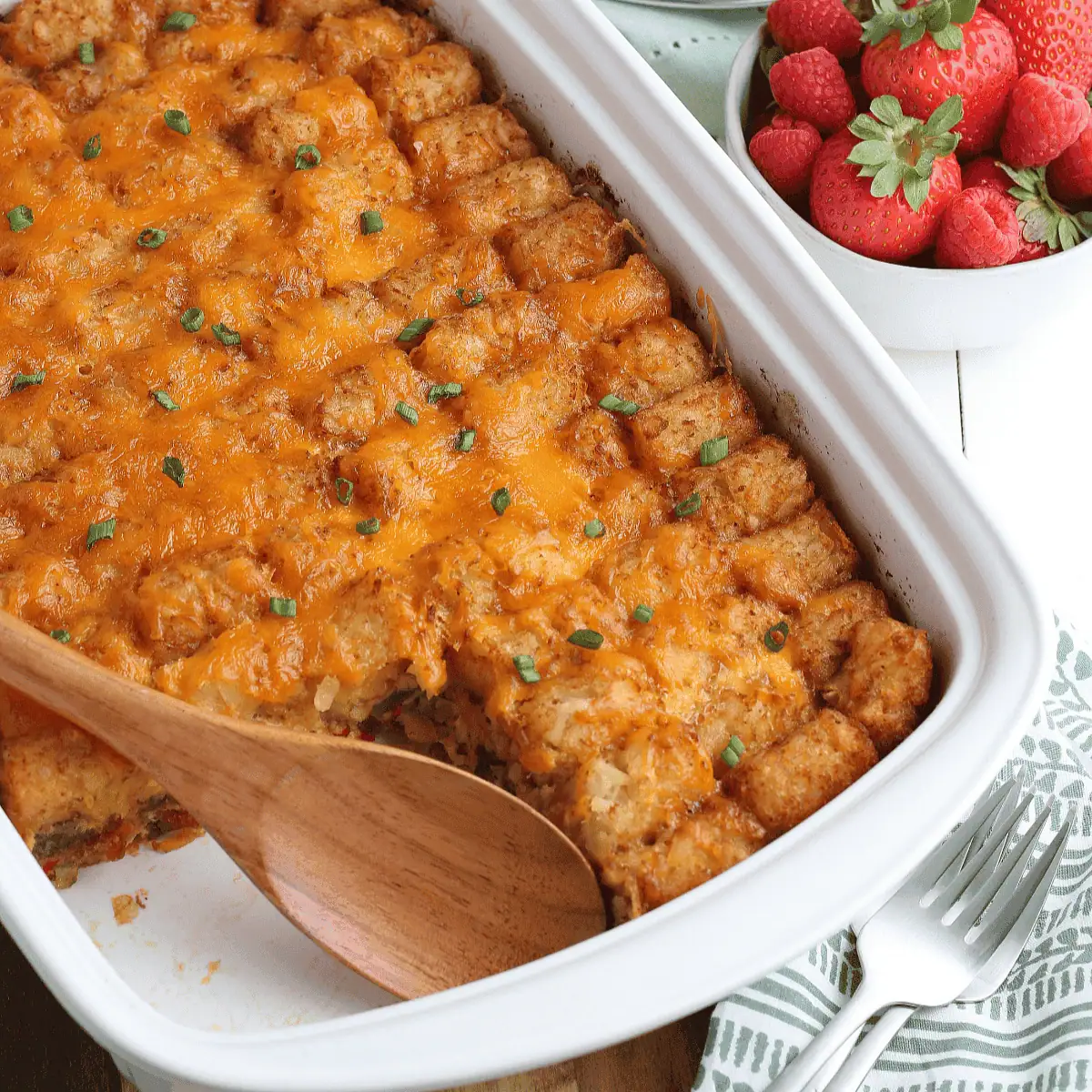 There are a couple of reasons your Tater Tot casserole could be runny. If it hasn’t been cooked long enough, the eggs won’t have set, resulting in a runny casserole. But don’t worry, this is very easy to fix! Simply put it back in the oven for a few minutes and try cutting into it again. If the Tater Tots are becoming darker than you’d like, cover the pan in tin foil. This will allow the eggs to continue to cook without darkening the Tater Tots further.