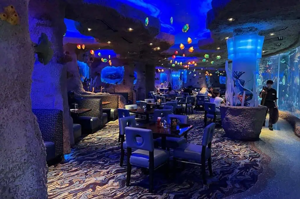Set against a panoramic view of an aquarium, the Coral Reef Restaurant offers diners an underwater escape. Fresh seafood selections are the star here, prepared with techniques emphasizing their natural sweetness and tenderness. Delicate poaching and gentle grilling highlight flavor profiles, while citrus and fresh herbs complement the maritime menu. Diners enjoy the intimate connection with sea life as they savor perfectly cooked shrimp, scallops, and more, amidst oceanic ambiance.