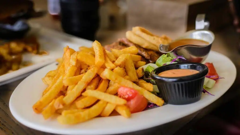French fries are a salty indulgence that can endanger heart health due to their preparation method. Typically deep-fried in unhealthy oils, they contain trans fats and excess sodium. These can disrupt lipid levels and raise blood pressure. Baked potato wedges seasoned with herbs provide a heart-friendly option.