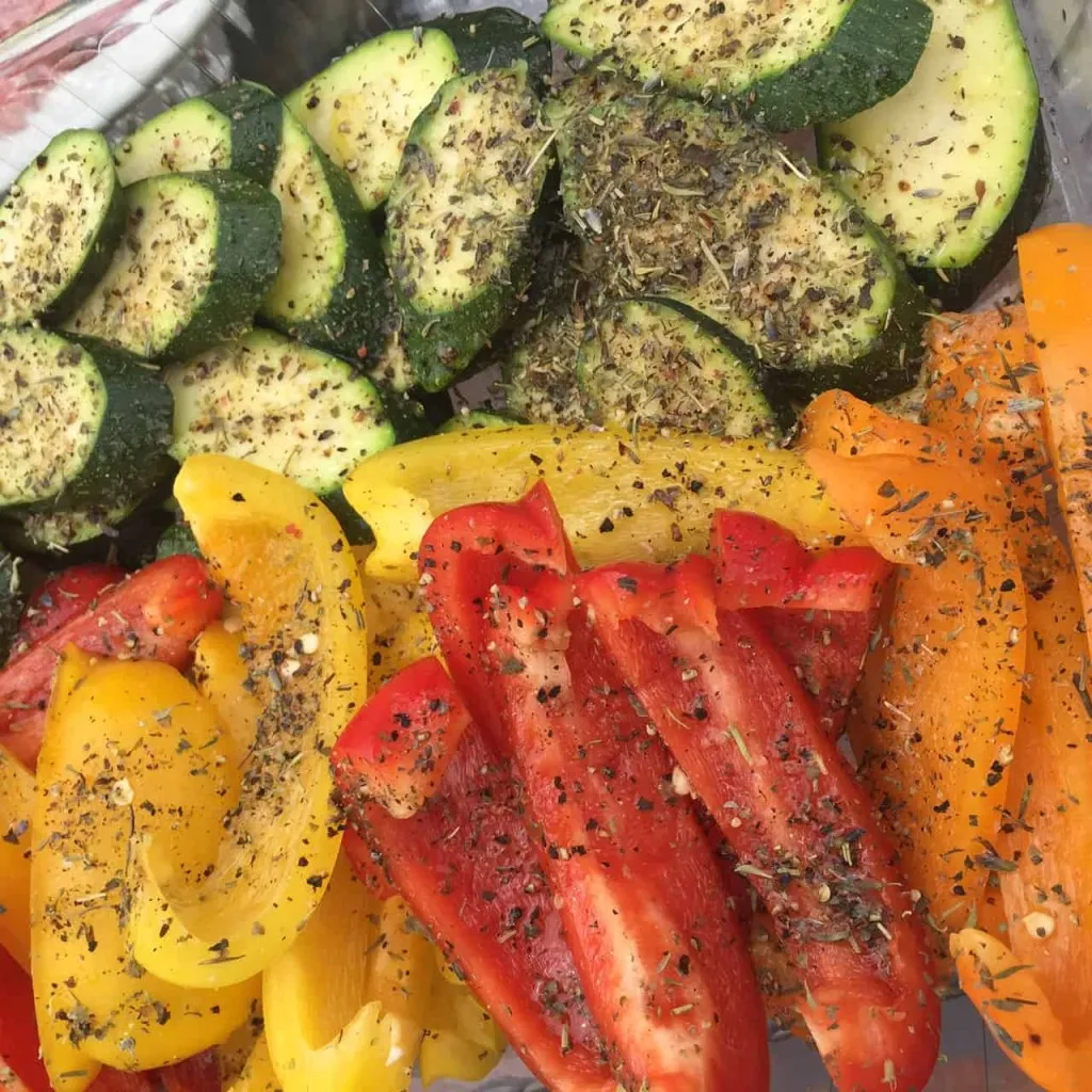These are the veggies that we cooked on the grill, and by we…I mean my friend, Ellie. She was going completely crazy over this grill. The veggies were marinated in extra virgin olive oil, pink sea salt, cracked rainbow pepper, and some herbs de provance. Again…not one flare up (check the video!)