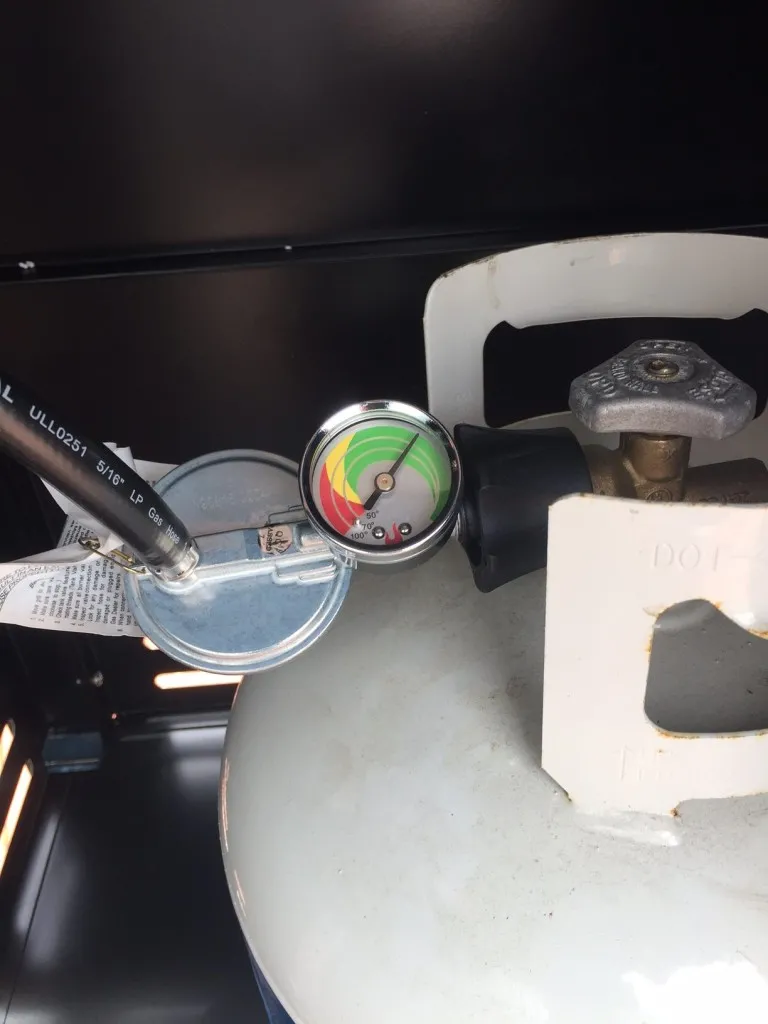 The gas gauge is super functional, and easy to read in letting you know that you need some more petro in your tank. There's also enough storage space to the side of your tank to hold extra accessories for your grill, including a cast iron griddle that comes with it. Can you say that I'm going to make pancakes in the morning on this thing? Don't try me. You know that I will.