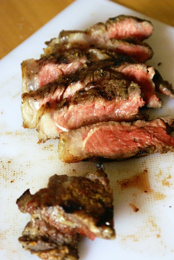 Look at this beautiful steak. No dried out edges, and super juicy (medium rare, of course).