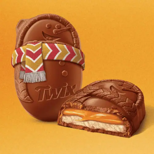The biggest surprise is the texture. Instead of the traditional crunchy cookie base, Twix Snowmen use a smooth, shortbread-like center that’s softer and creamier. It melts faster, giving the candy a truffle-like feel rather than a layered bite. The caramel is thicker and marshmallowy, blending with the chocolate into a richer flavor that feels more indulgent than a standard Twix bar.