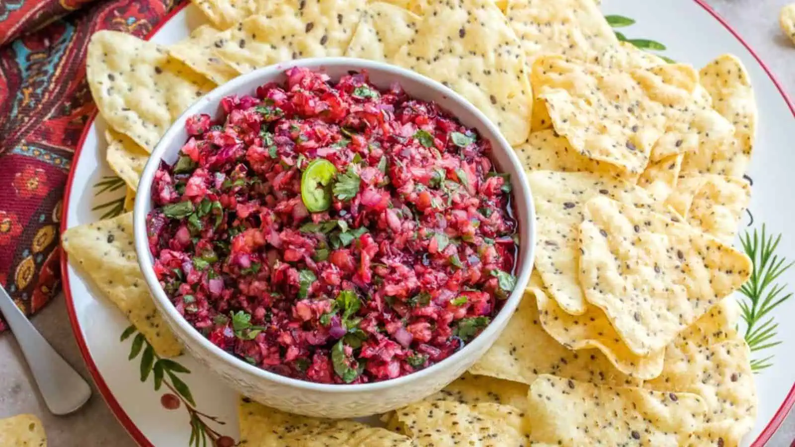 Cranberries donโt just belong in sauce. This salsa balances tart and sweet with a tropical pineapple boost. Itโs a fresh take on unique salsa recipes that works for the holidays and beyond.