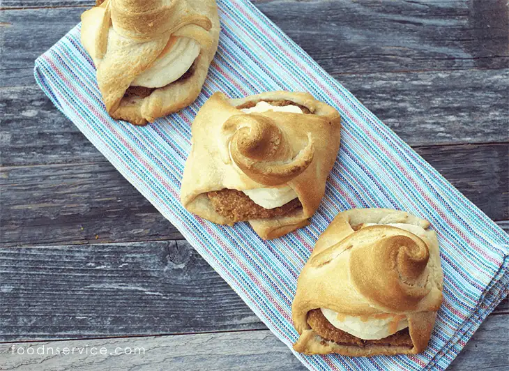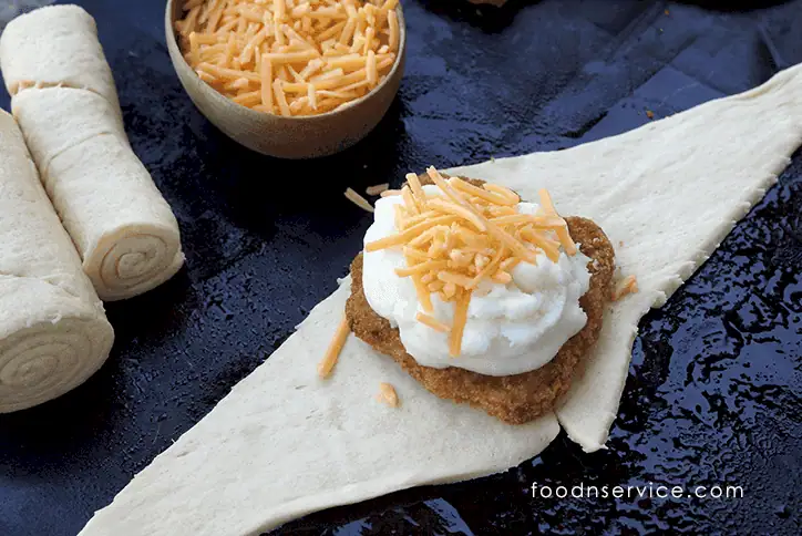 5. Take 2 triangles of croissant rolls and place them end to end and crimp ends together to create a base.