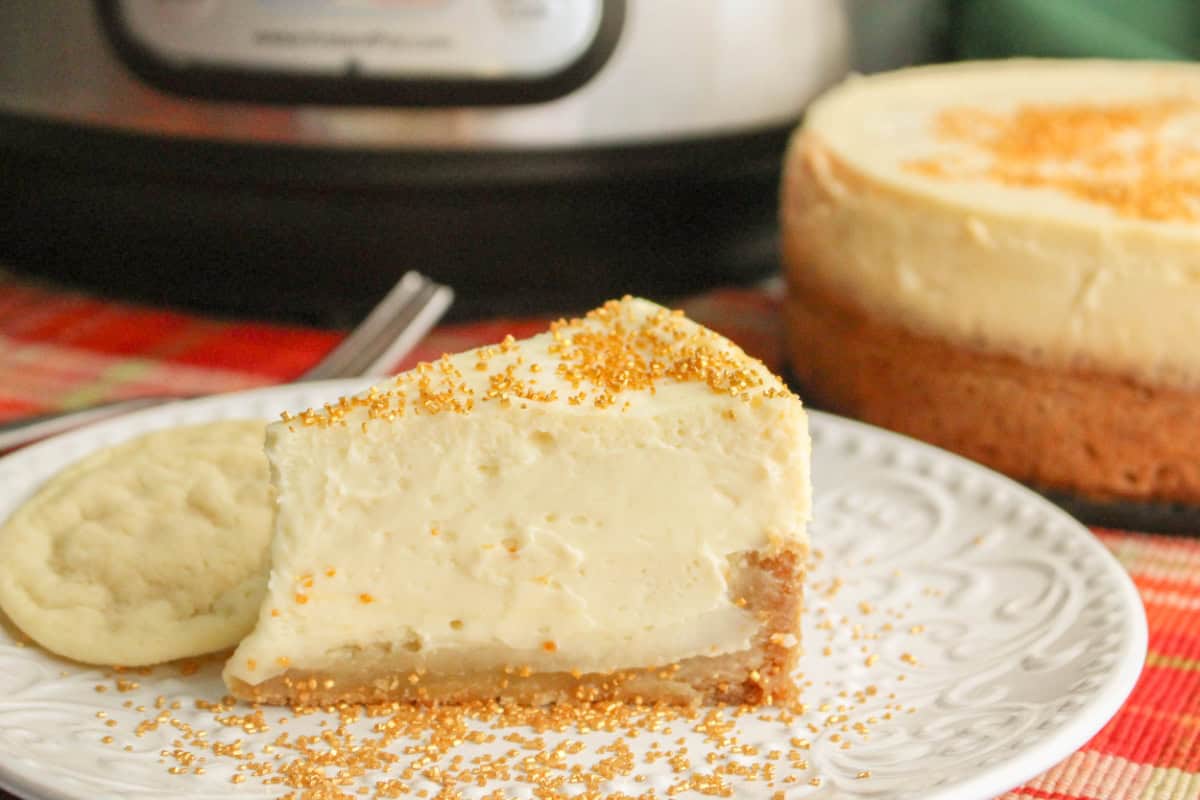 - When the cooking cycle is complete, allow the electric pressure cooker to naturally release the pressure until the pressure pin drops. Remove the lid and allow the cheesecake to continue cooling inside the pressure cooker for 20 minutes before removing.