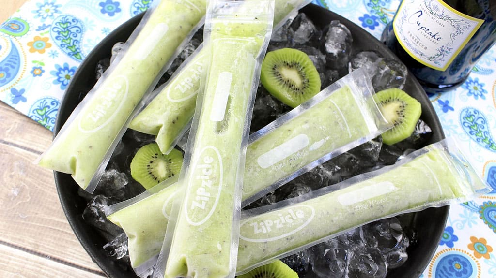 4. Pour the kiwi mixture into the zipsicles pouches. I used a small