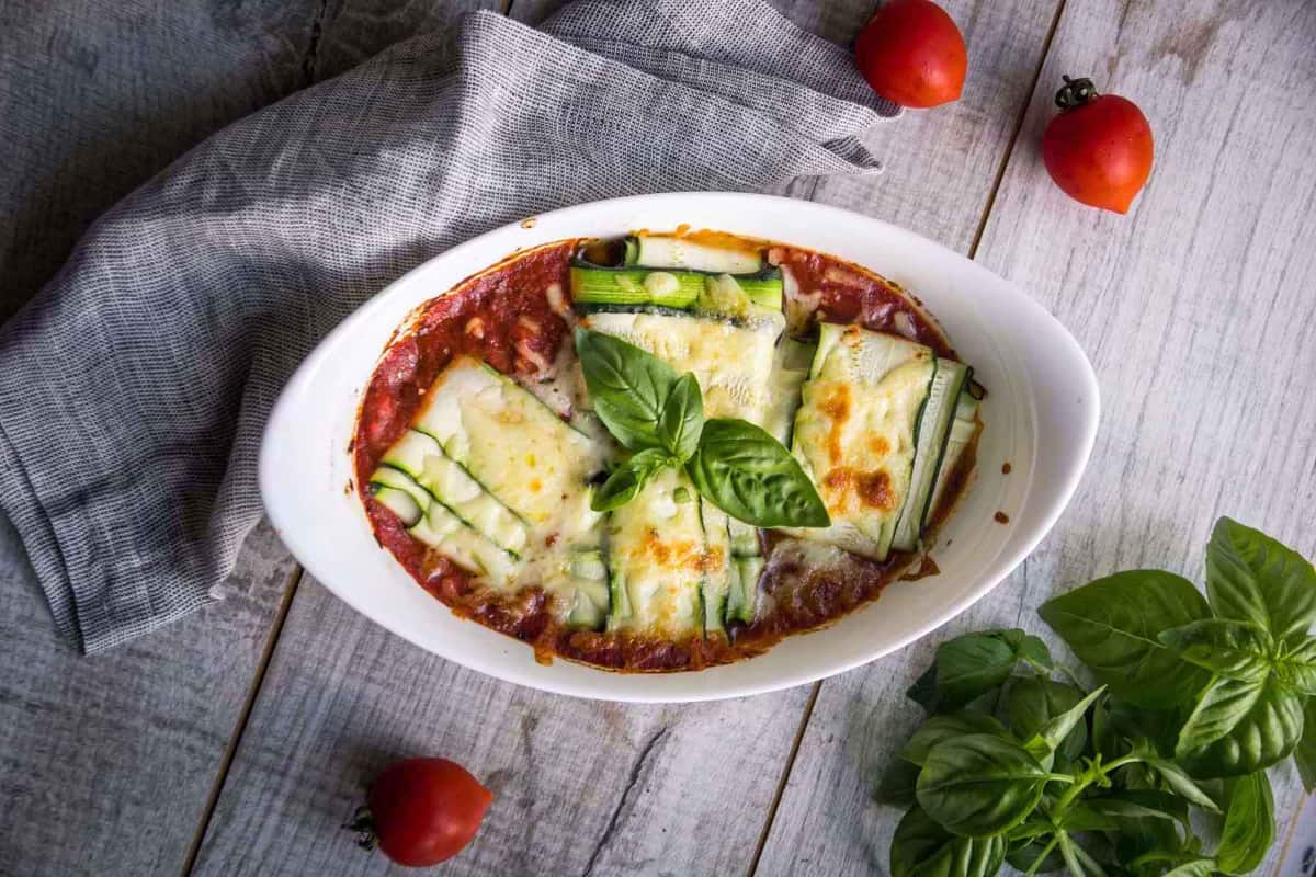 Place zucchini ravioli in the dish and top with remaining mozzarella. Bake about 25 mins, until the cheese is melty and golden on top.