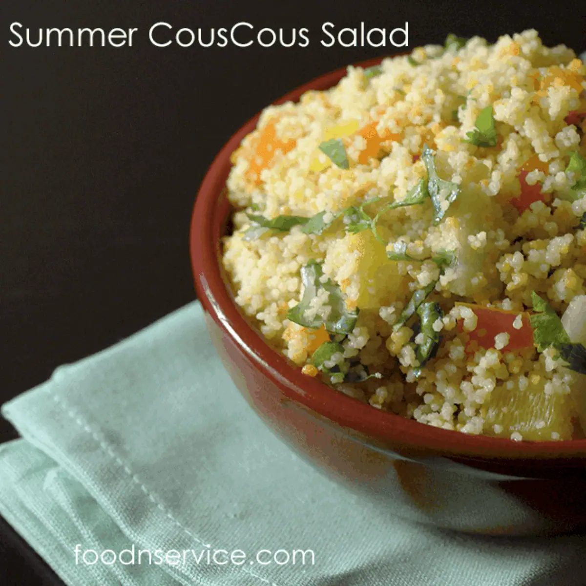 - This summer couscous salad can be enjoyed as a side dish to grilled meats and other main dishes, or you can add chopped bacon, ham, or shredded chicken and turkey into the salad and turn it into a hearty meal.
