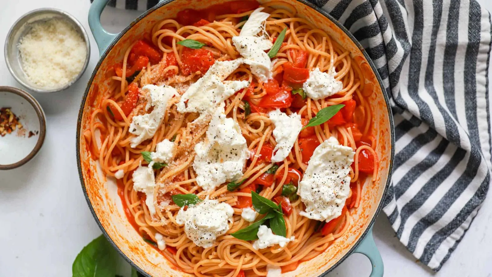 All the good parts of bruschetta, just reimagined in pasta form. It’s a smart pick for a summer dinner because it’s fast, fresh, and doesn’t need much else on the plate.