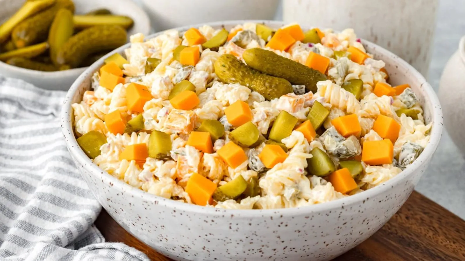 This one leans fresh and light with a punch of lemon and tender chickpeas. It won’t steal the spotlight at a cookout, but you’ll catch people going back for seconds anyway.