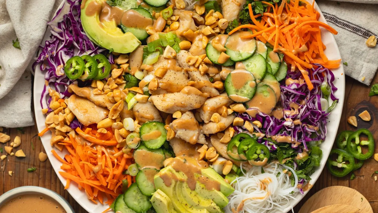 This salad tastes like a spring roll crashed into a noodle bowl and made a friend. It’s crunchy, herby, and drenched in peanut dressing. You'll eat it on repeat all summer.