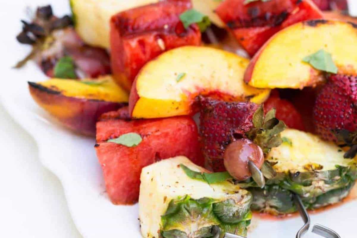 Stack your favorite summer fruits on a skewer and drizzle them with a spicy honey marinade for the best way to serve fruit without making a salad. These are grilled to perfection to bring out flavor profiles you might not have known simple fruits possessed.