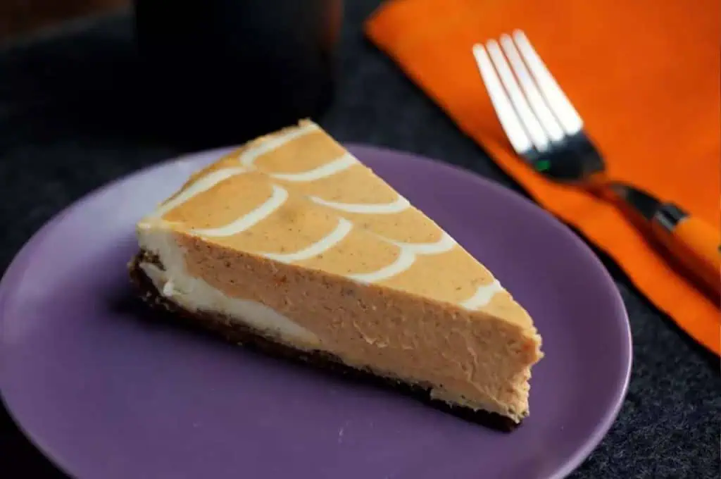 An elegant dessert that skillfully marries the richness of cheesecake with the warmth of pumpkin. Use a graham cracker base, enhancing it with cinnamon for extra depth. Blend cream cheese with pumpkin puree, sugar, spices, and eggs for a smooth, cohesive batter. Pour into the crust and skillfully pipe the reserved batter in concentric circles. Use a toothpick to drag from the center outward, forming delicate spiderwebs. This creates a dramatic visual while offering a creamy, spiced finish, perfect for your Halloween spread.