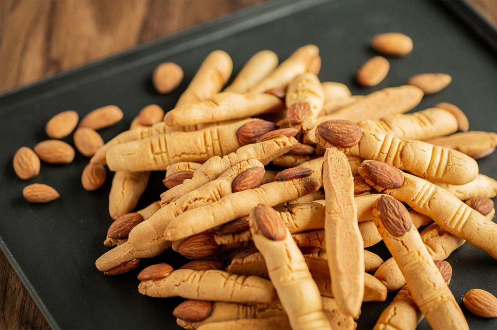 Craft these ghoulish treats by preparing a simple sugar cookie dough intensified with almond extract. Shape dough into finger-sized logs, adding texture with lines to resemble knuckles. Press a blanched almond on one end for the nail. Chill the shaped fingers before baking to maintain their structure. Once golden, a touch of red gel icing creates a bloody base at the almond, enhancing the eerie, realistic appearance while offering a buttery, sweet delight.