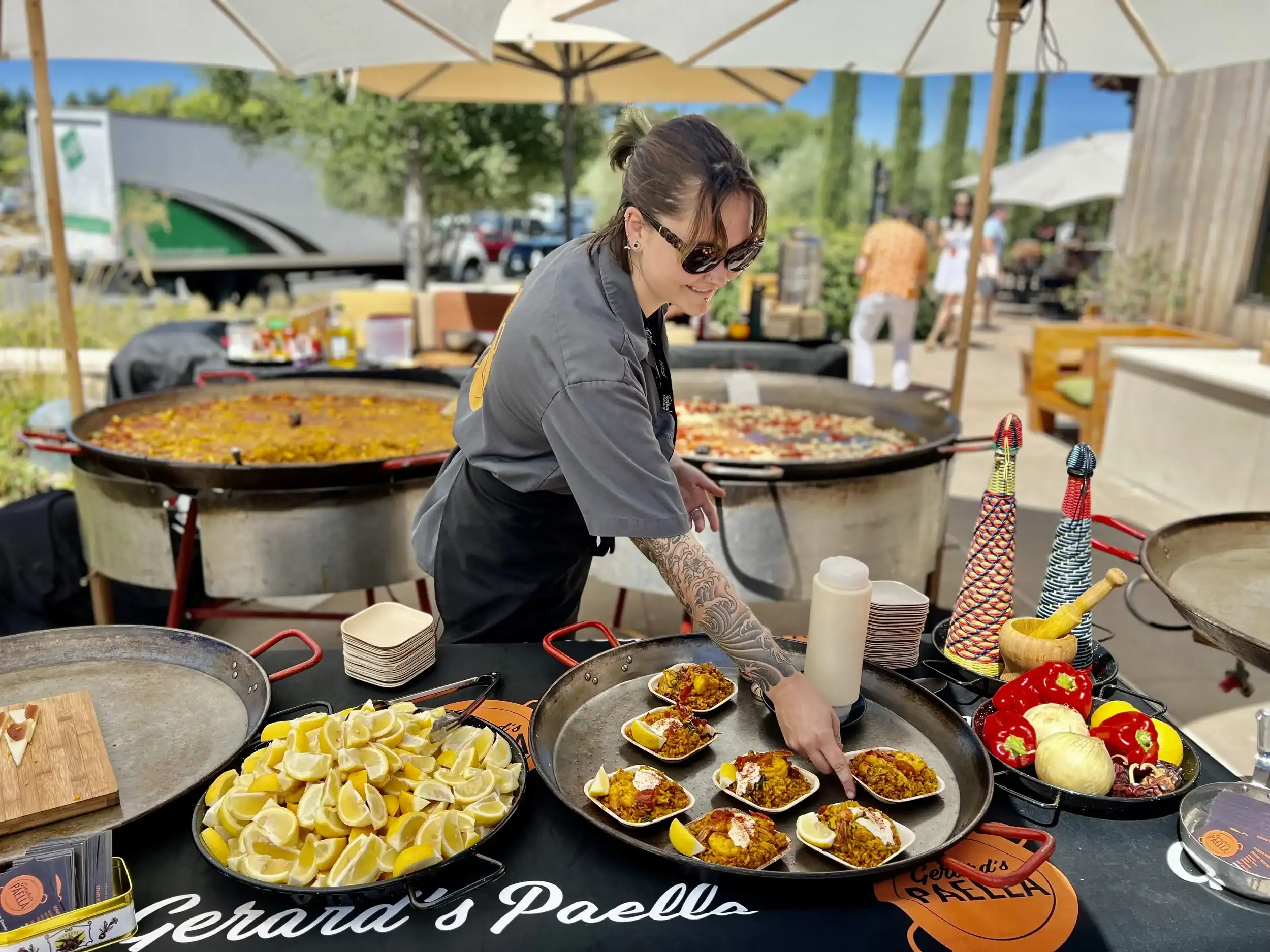 Gerard’s Paella isn't just a food stall; it’s a performance. Founded by Gerard Nebesky, a man who has dedicated his life to the art of the open-flame Spanish rice dish, the operation is a marvel of festival logistics.
