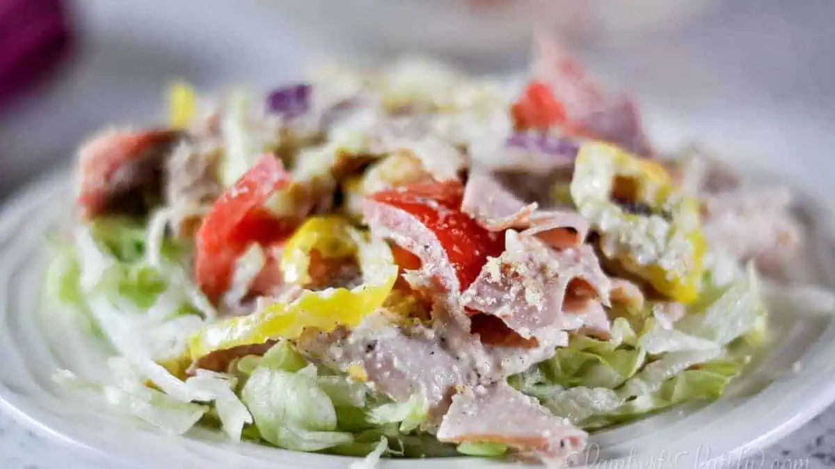 Transform the flavors of a classic Italian sub into this refreshing Grinder Salad from Lamberts Lately. It's perfect for those hot summer evenings when you want a quick, no-cook meal. Enjoy a medley of deli meats, cheeses, and crisp veggies, all brought together with a creamy dressing.