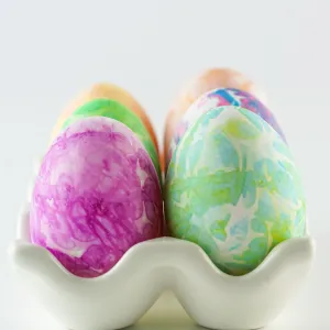 Easter eggs made with tissue paper are easy to make! The secret is, you need tissue paper that bleeds ink when it gets wet. You can look specifically for Bleeding Tissue Paper when you shop.