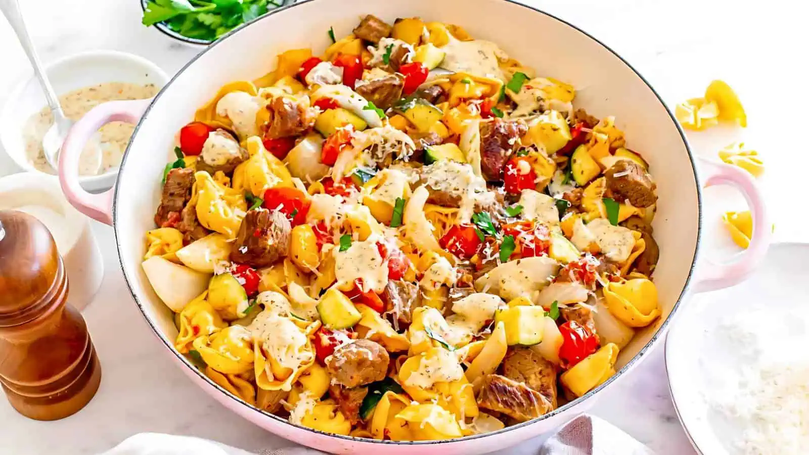 Garlic parmesan steak tortellini is a bold, satisfying meal that combines juicy steak, tender pasta, and a rich garlic sauce. Everything cooks together in one pan, which keeps things simple in the kitchen. It’s one of those tortellini recipes that feels restaurant-worthy but is easy enough for a weeknight.
