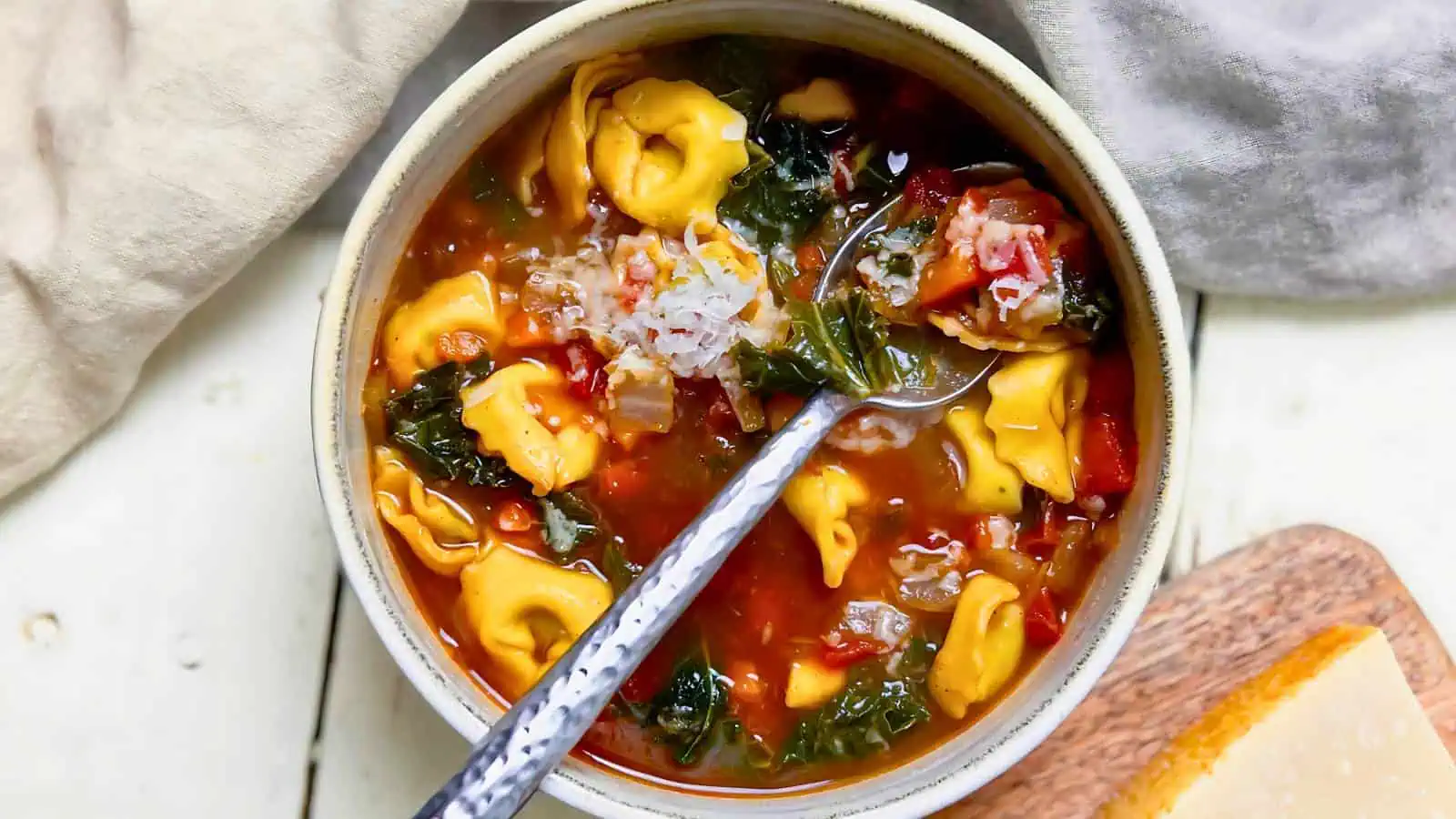 This hearty tomato tortellini soup is a great way to use leftover tortellini while adding extra greens to your dinner. The kale brings a fresh balance to the tomato broth, while the pasta makes the soup filling. Tortellini recipes like this combine comfort and nutrition in every bowl.