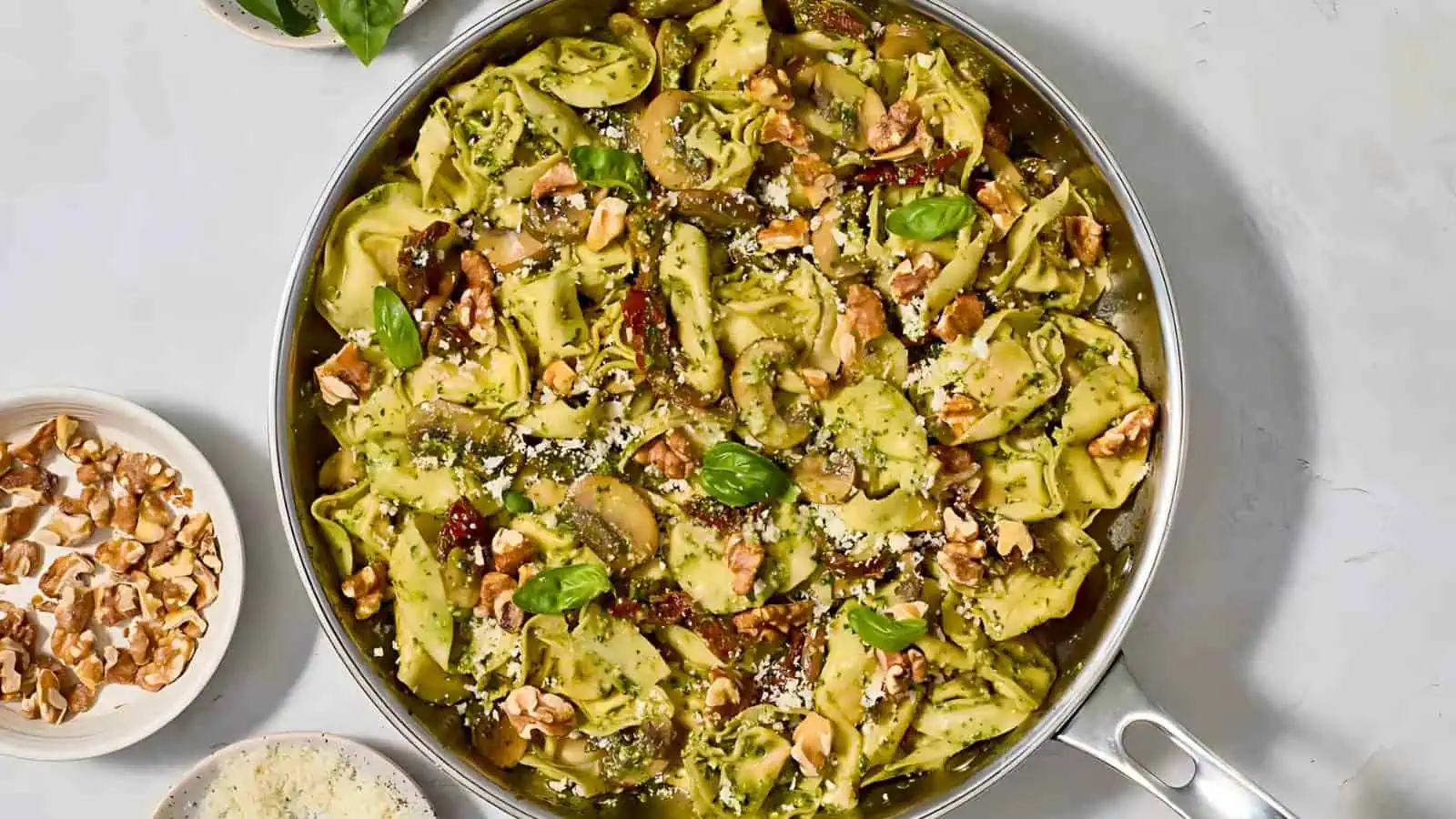 Creamy pesto tortellini combines tender pasta with vibrant pesto, mushrooms, and sun-dried tomatoes. Toasted walnuts add a little crunch, making every bite interesting and satisfying. For anyone exploring flavorful tortellini recipes, this one brings fresh ingredients together beautifully.
