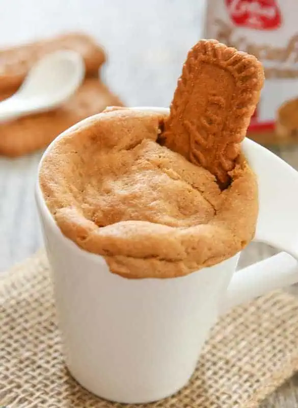 This cake is perfect for somebody who only needs one serving. It is fluffy, moist, and sweetened with cookie butter spread. You can eat it in a bowl or from the mug, but be careful because it tastes really good!