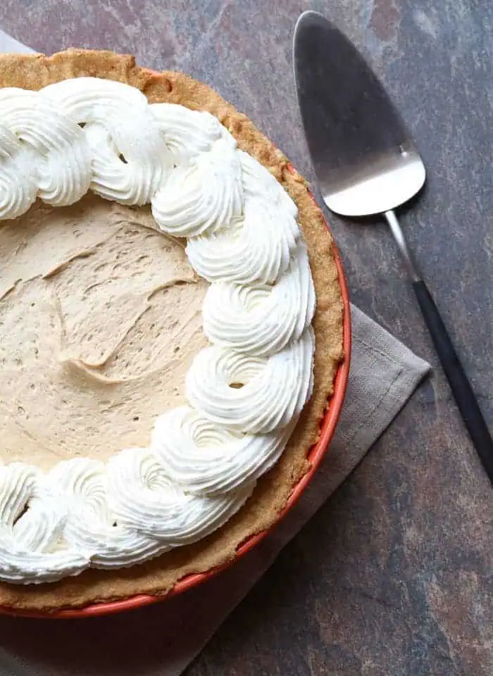 This cookie butter pie is an outstanding, decadent dessert. The crust is made out of cream cheese and the filling is cream with five ingredients. You can eat this pie alone or you can put it on ice cream. It tastes really good!