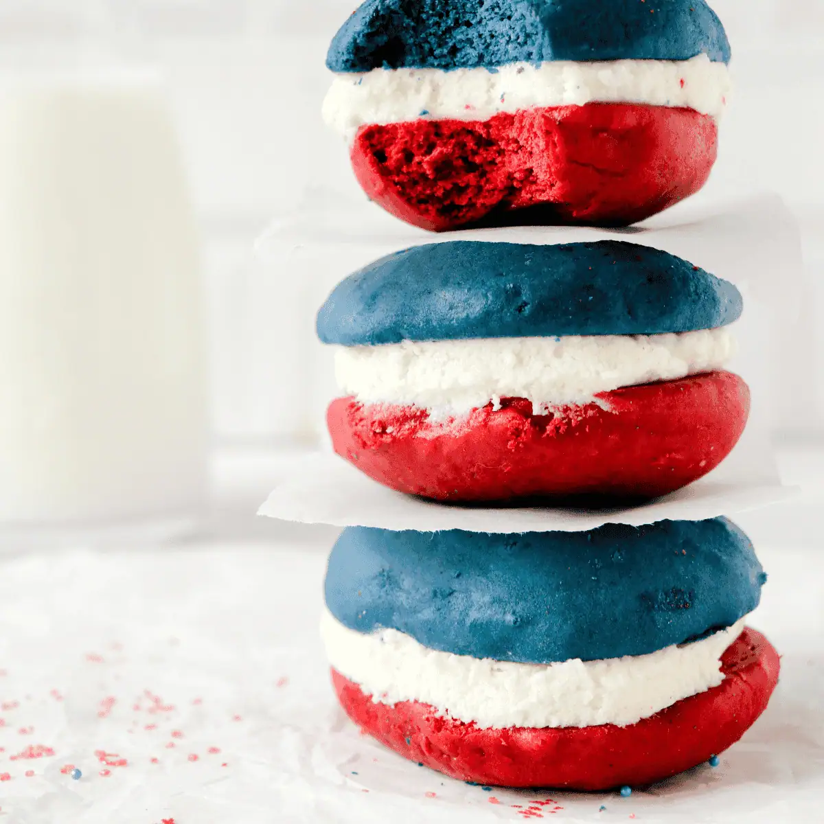 Food coloring – Easily make these delicious whoopie pies with different food coloring to suit other holidays and party themes. Colored sanding sugar can also be used instead of sprinkles. You can even use natural food colors to help add vibrant colors to your baking.