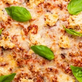 - Bake for 30 minutes until browned and bubbling. Remove from the oven and wait 10 minutes before slicing. Garnish with fresh basil and serve.