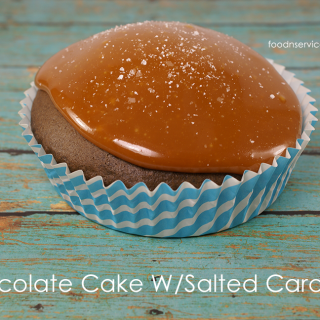 While the sauce is still slightly warm and malleable, take a table spoon and scoop a portion on top of the cake.