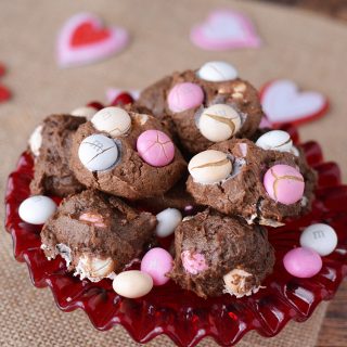 Scoop onto prepared baking sheet with a tablespoon scoop and place 3 additional m&ms onto the tops of the cookies.