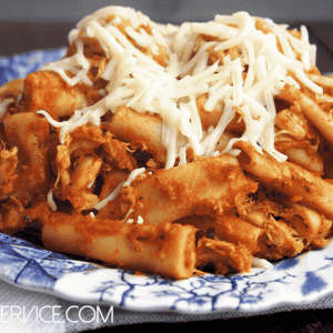 Add the pasta over the chicken. Then add chicken broth and be sure to scrape off any bits from the bottom that might have gotten stuck. Then you can add your pasta sauce, pepper flakes, salt, garlic powder, thyme, and oregano. DO NOT STIR! Leave ingredients layered as is.
