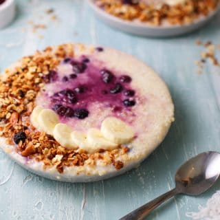 This Instant Pot Quinoa breakfast bowl is creamy and tastes delicious! I love the added blueberries and granola for taste and texture.