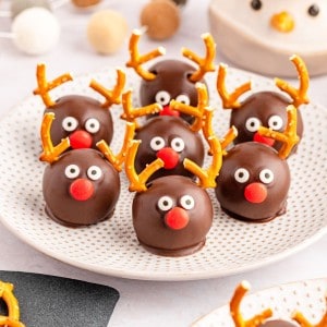 Allow the reindeer oreo balls to set completely before serving, about 15 minutes. You can place them in the refrigerator to help them harden faster. Keep refrigerated until ready to eat.