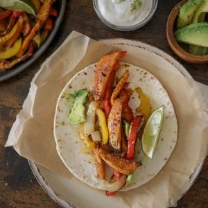 Notes: The zesty lime sauce can be made up to 2 days ahead and stored in the refrigerator. The fajita filling will keep well in an airtight container in the refrigerator for up to 3-4 days.