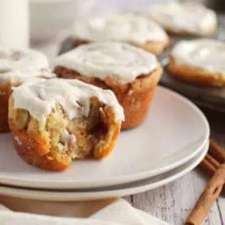 - If you donโt want to bake these cinnamon rolls in a muffin pan, go ahead and assemble them together in a pie dish thatโs deep enough. You can serve these cinnamon rolls in the pie dish as a larger dessert, pulling individual rolls apart when serving.